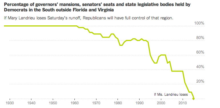 Yet it also reflects the very specific conditions of 2014. Today’s national Democratic Party is as unpopular in the South today as it has ever been, in no small part because the party has embraced a more secular agenda that is not popular in the region.